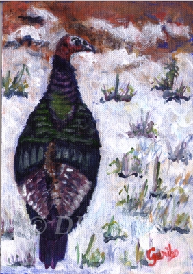 One of my favorite winter birds is the turkey. They usually come in flocks; we've had as many as nearly 50 come at one time. When this happens, it is usually 3 or 4 flocks coming together. With the ground covered by several inches of snow, they are hard-pressed to find any food to eat. So I give them some corn and maybe even throw in some black-oil sunflower seeds. They gratefully eat whatever I throw out to them since as ground-feeders, food is so scarce at this time.
